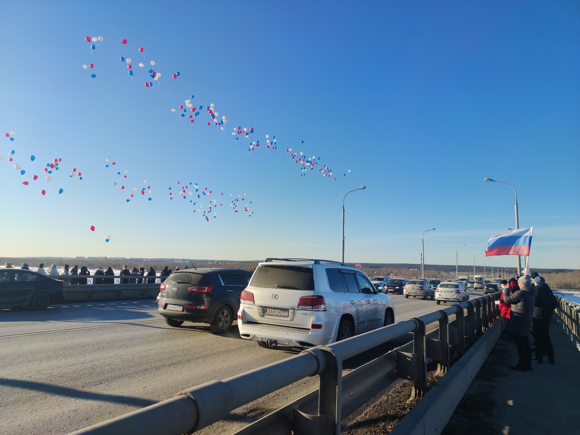 В среду, 16 марта в Перми на Коммунальном мосту запустили воздушные шары с цветами российского триколора