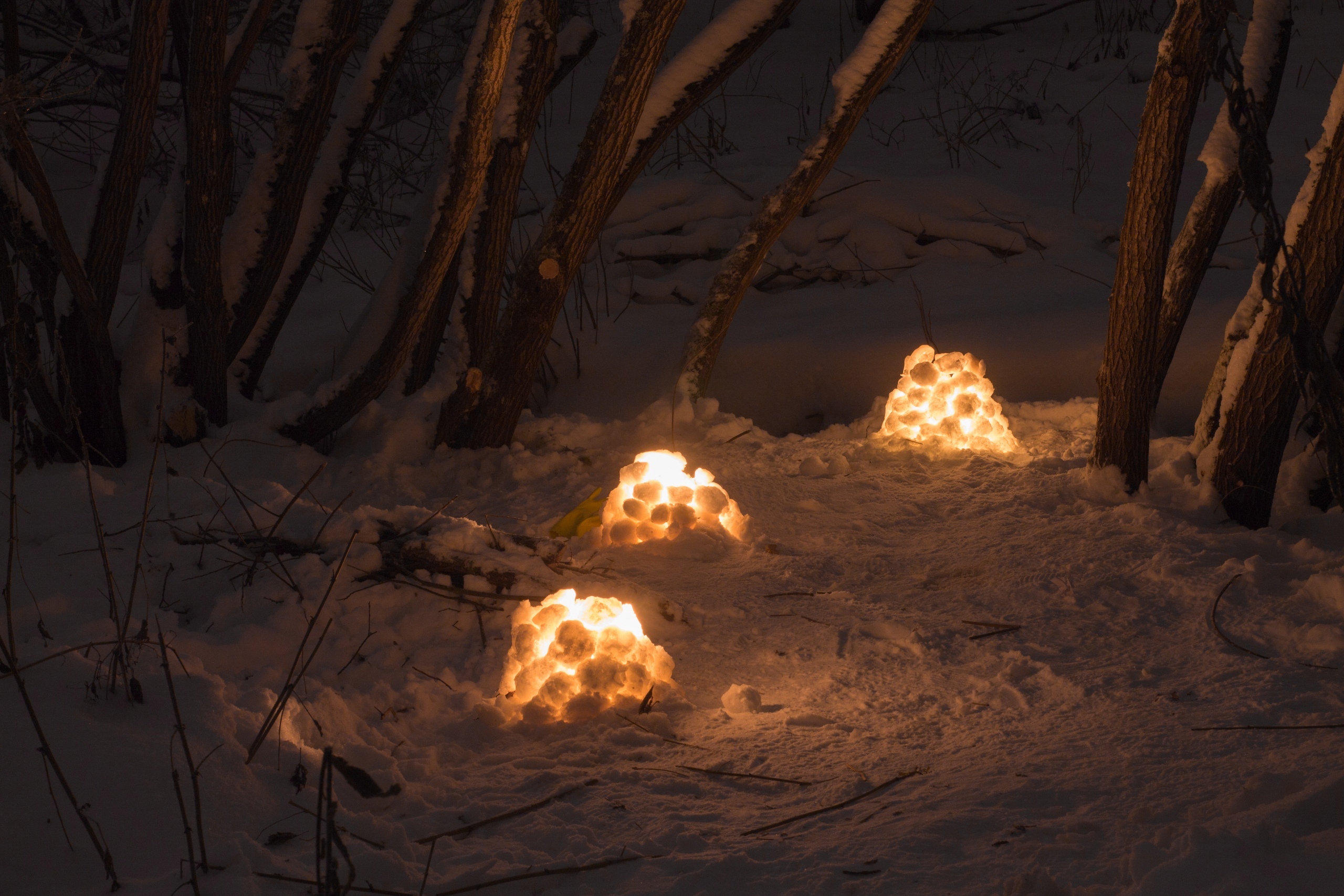 С собой организаторы рекомендуют взять восковые свечи, тёплые варежки и хорошее настроение. Участникам предстоит слепить снежки и выложить из них круг. Размер фонарика может быть любым. Следующие ряды снежков необходимо выкладывать в шахматном порядке, уменьшая их количество и постепенно сужая конус. Пока пирамида не «закрылась», необходимо поставить внутрь зажжённые свечи. Получается настоящее волшебство.