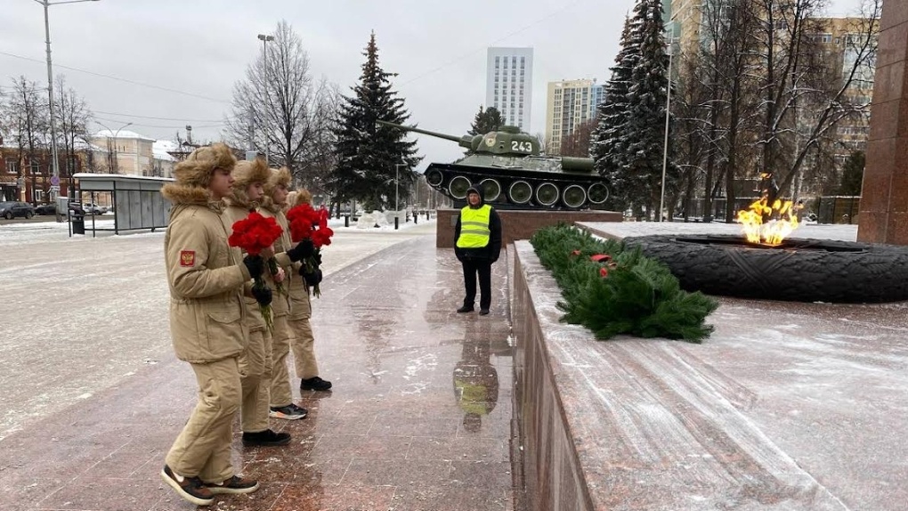 5 декабря, в память о годовщине начала контрнаступления советских войск под Москвой, волонтеры возложили цветы к Вечному огню у Памятника Уральскому добровольческому танковому корпусу. Этот день — годовщина «Битвы под Москвой» в 1941 — 1942 гг. , одного из крупнейших сражений в истории Великой Отечественной войны. Битва происходила на территории до 1 тыс. километров и длилась в течение 203 суток.