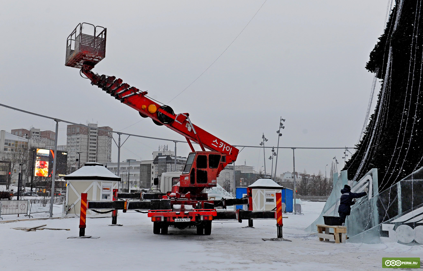Параллельно продолжаются работы по монтажу ледового городка на эспланаде. В этом году он будет посвящен 300-летнему юбилею Перми.