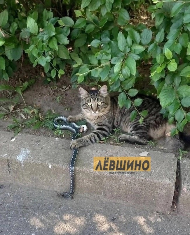 Фотофакт: В Перми кошка поймала большую змею