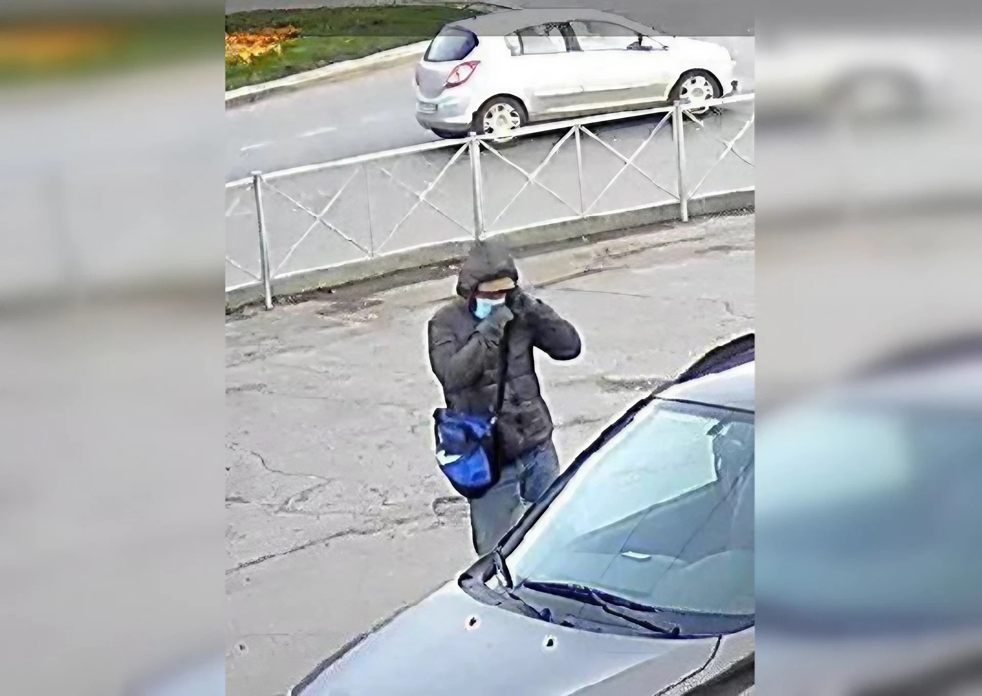 По данным следствия, подозреваемый - мужчина ростом около 170-173 см, среднего телосложения, одетый в серую куртку с капюшоном, бежевую бейсболку, синие джинсы, серые перчатки и черные кроссовки. У него была черно-синяя сумка.