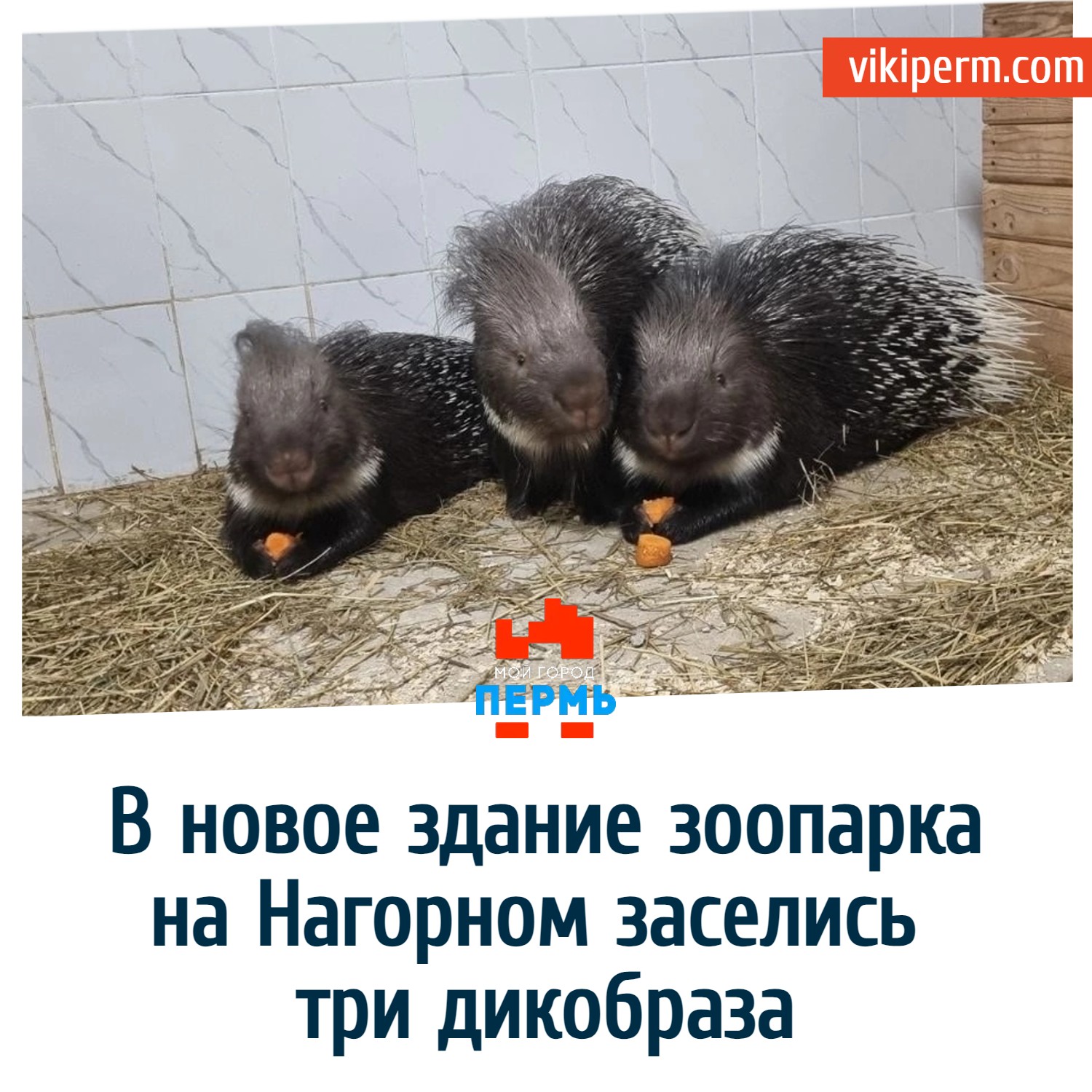 Катя, Василиса и Снежана прибыли из частного зоопарка, коллекция которого была расформирована. Животные контактные, людей не боятся. Пока дикобразы находятся на карантине.