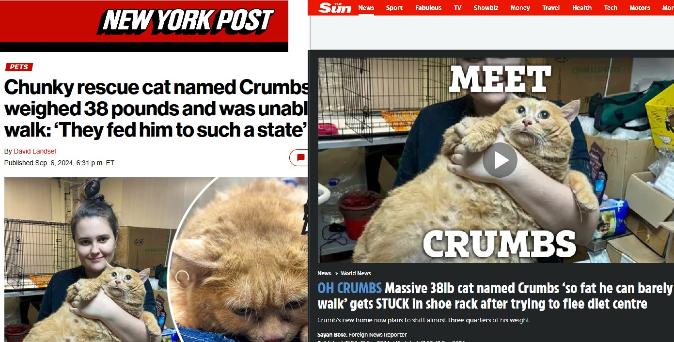 38-фунтовый кот из России остался неспособным ходить после того, как его кормили печеньем и супом, - пишут издания New York Post, The Sun и многие другие.
