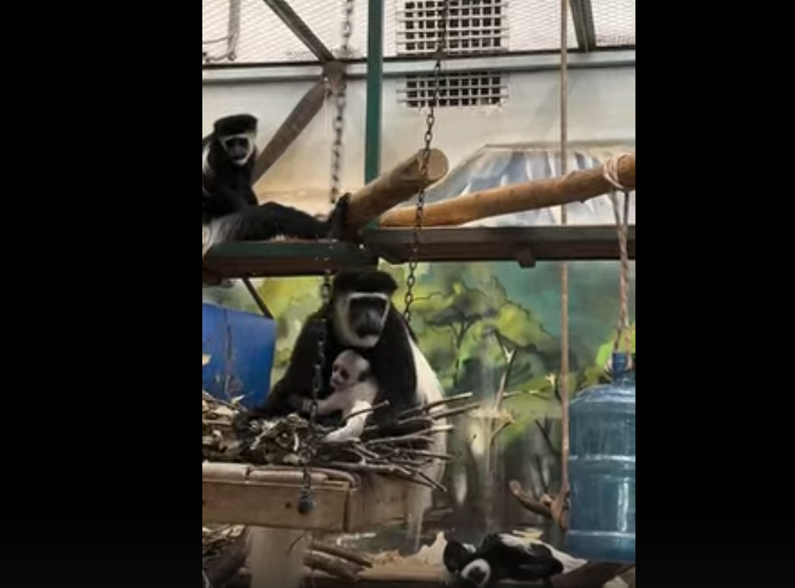 В Пермском зоопарке в семействе восточных колобусов случилось радостное событие — у Дуси и Феди появился на свет малыш
