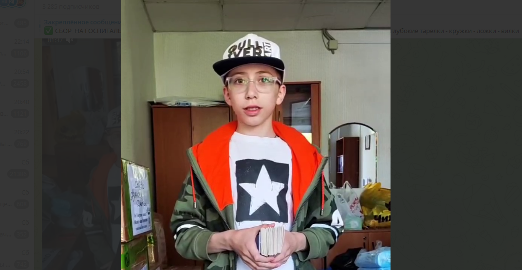 Летом прошлого года 14-летний Платон передал бойцам квадрокоптер, который ему подарили родители. Также вместе с семьей он присоединился к волонтерской группе «Молот» в Луганске, помогал закупать необходимые вещи для военных, готовить ткань для маскировочных сетей и собирать медикаменты.