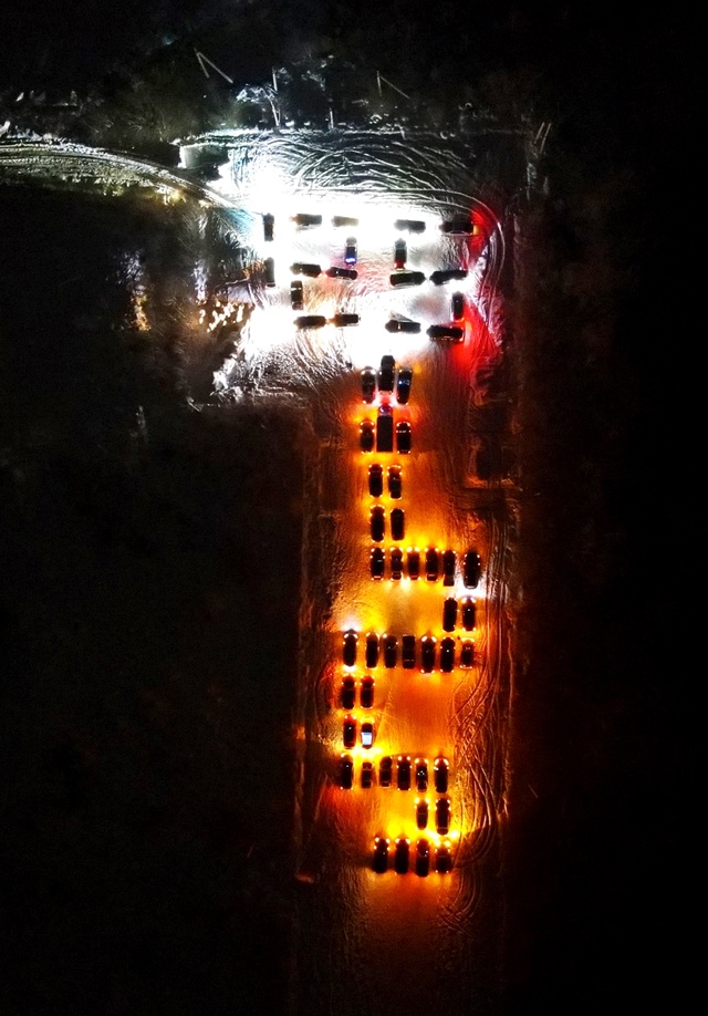 Для создания масштабной композиции потребовалась чёткая организация и внимательное планирование. Участники акции заранее подготовили схему, чтобы машины точно встали в нужные позиции. Итоговое изображение получилось впечатляющим, а фигура змеи была подчёркнута светом фар, добавив выразительности общему виду.