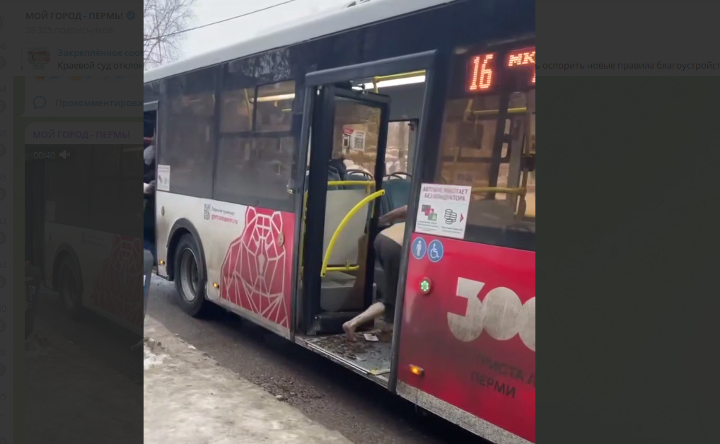 В Перми на Тургенева неадекват разбил дверь автобуса и устроил дебош
