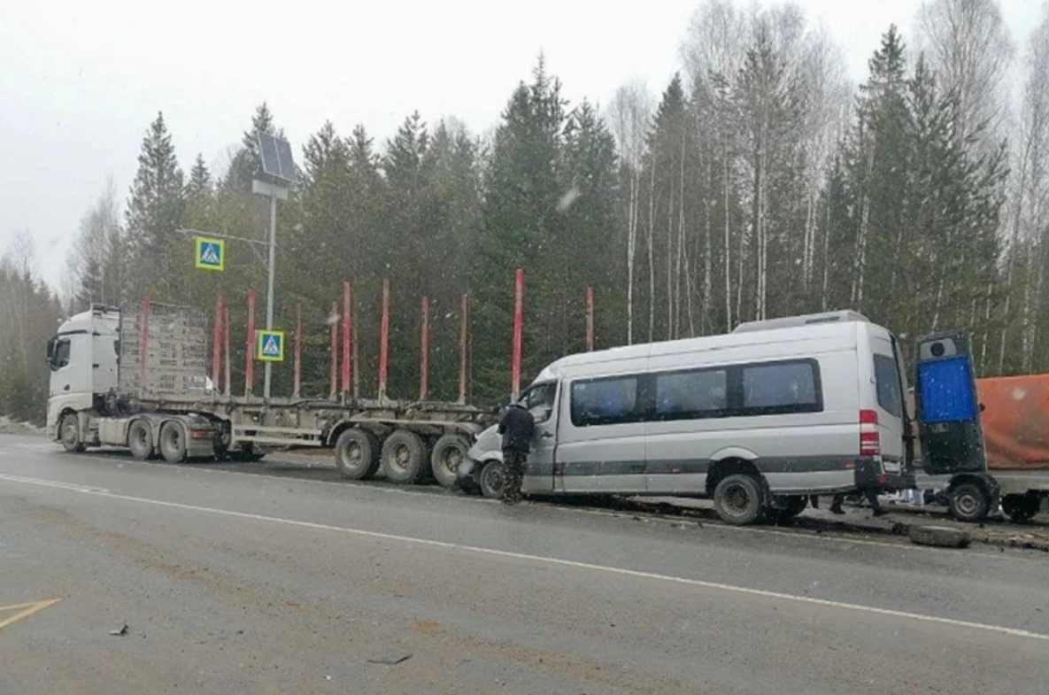 По дороге, недалеко от села Романово, водитель микроавтобуса не справился с управлением: на скорости он врезался в «Ладу Гранту», а затем — в лесовоз. Легковая машина вылетела в кювет.