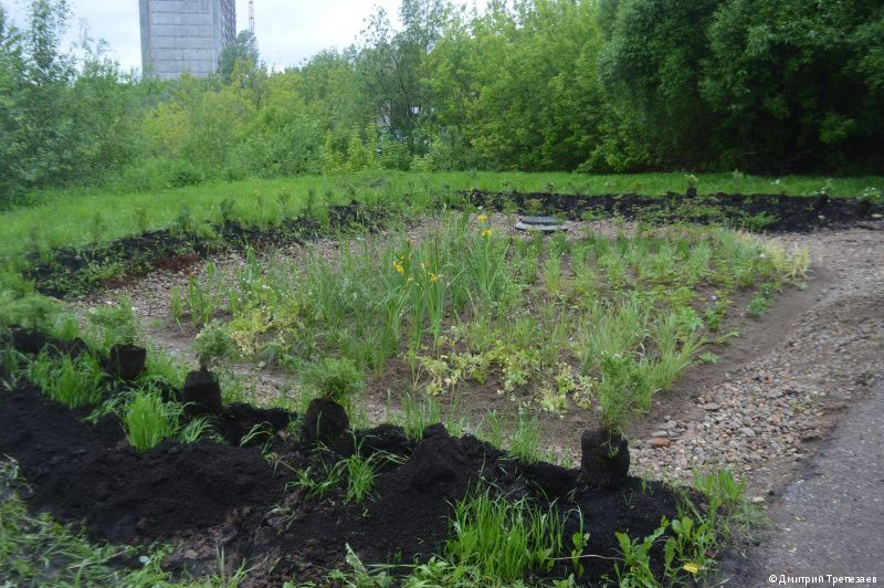 Что такое дождевой сад? Это специально пониженный участок, который собирает ливневую воду с окружающей территории. Вода проходит через слой почвы с влаголюбивыми растениями, которые фильтруют её естественным способом.