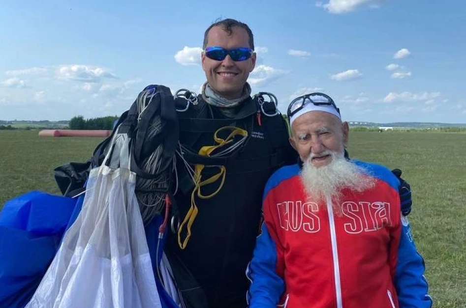 ⠀Пермяк на грани века исполнил мечту всей жизни — сиганул с высоты в небо. Да, ему 98.