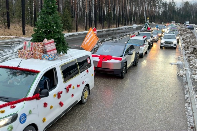 Колонна из 65 украшенных машин проехала по улицам города, чтобы подарить пермякам новогоднее настроение