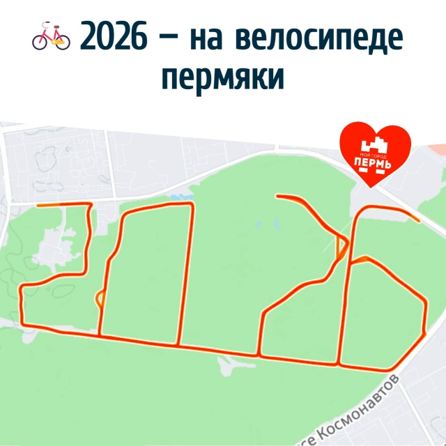 1 января 2026 года пермяки начали не с салатов, а с педалей. 67 велосипедистов выехали в Черняевский лес и проложили маршрут так, что на карте он сложился в цифры 2026.