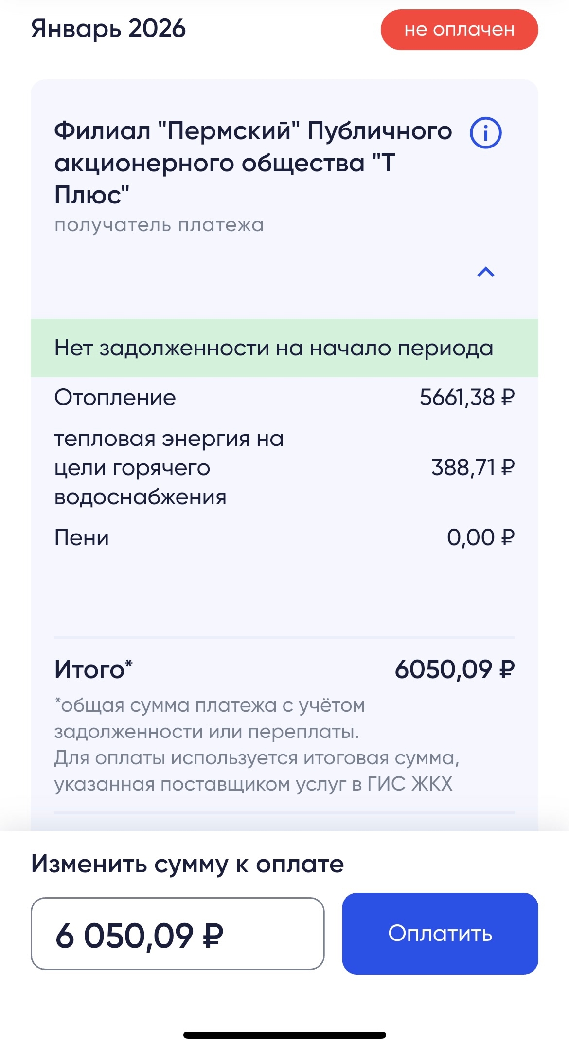 Подписчица «Подслушано Пермь» рассказала, что получила счёт от «Т Плюс» почти на 5700 рублей за обычную двушку.