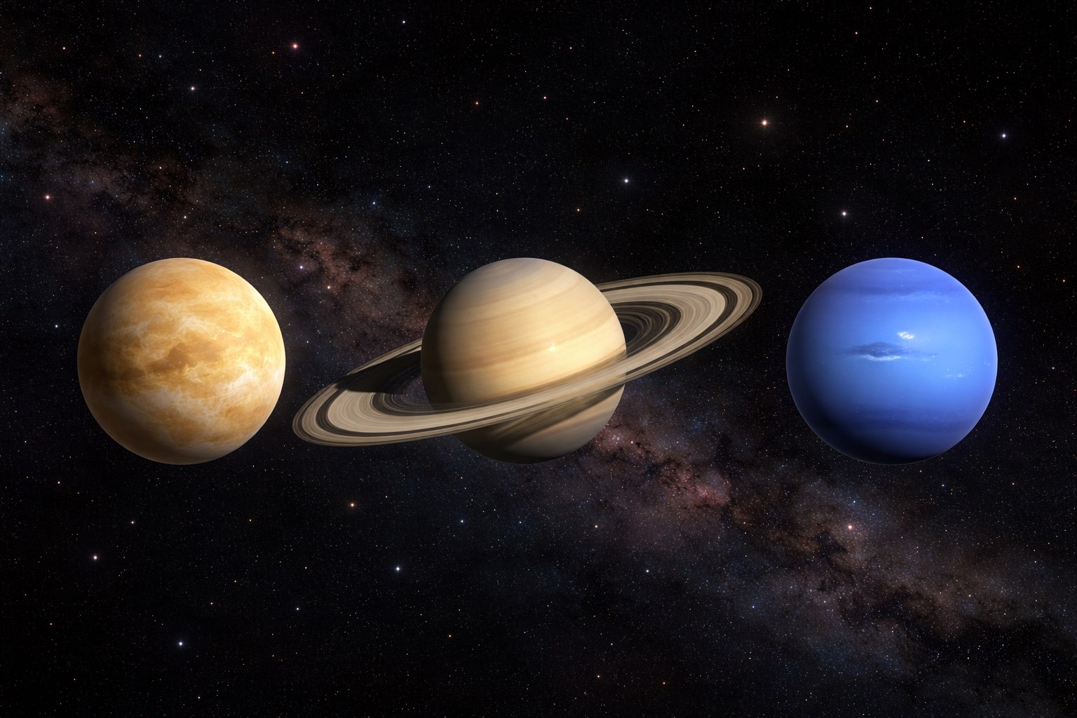 С Земли покажется, что три планеты подошли вплотную друг к другу. На деле это оптическая иллюзия: они находятся на огромном расстоянии, просто с нашей точки обзора попадают в один сектор неба. Такое совпадение бывает лишь раз в десятилетие из-за разной скорости вращения планет вокруг Солнца (у Венеры год длится 225 дней, а у Нептуна — 165 лет!).