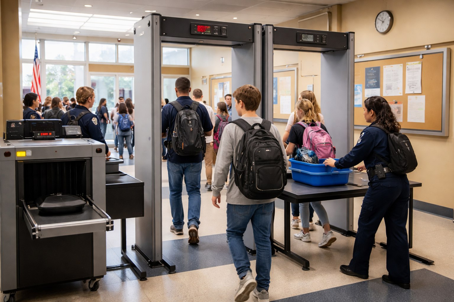 Если металлоискатель срабатывает и есть подозрение на опасный предмет, вызывают классного руководителя или дежурного администратора.