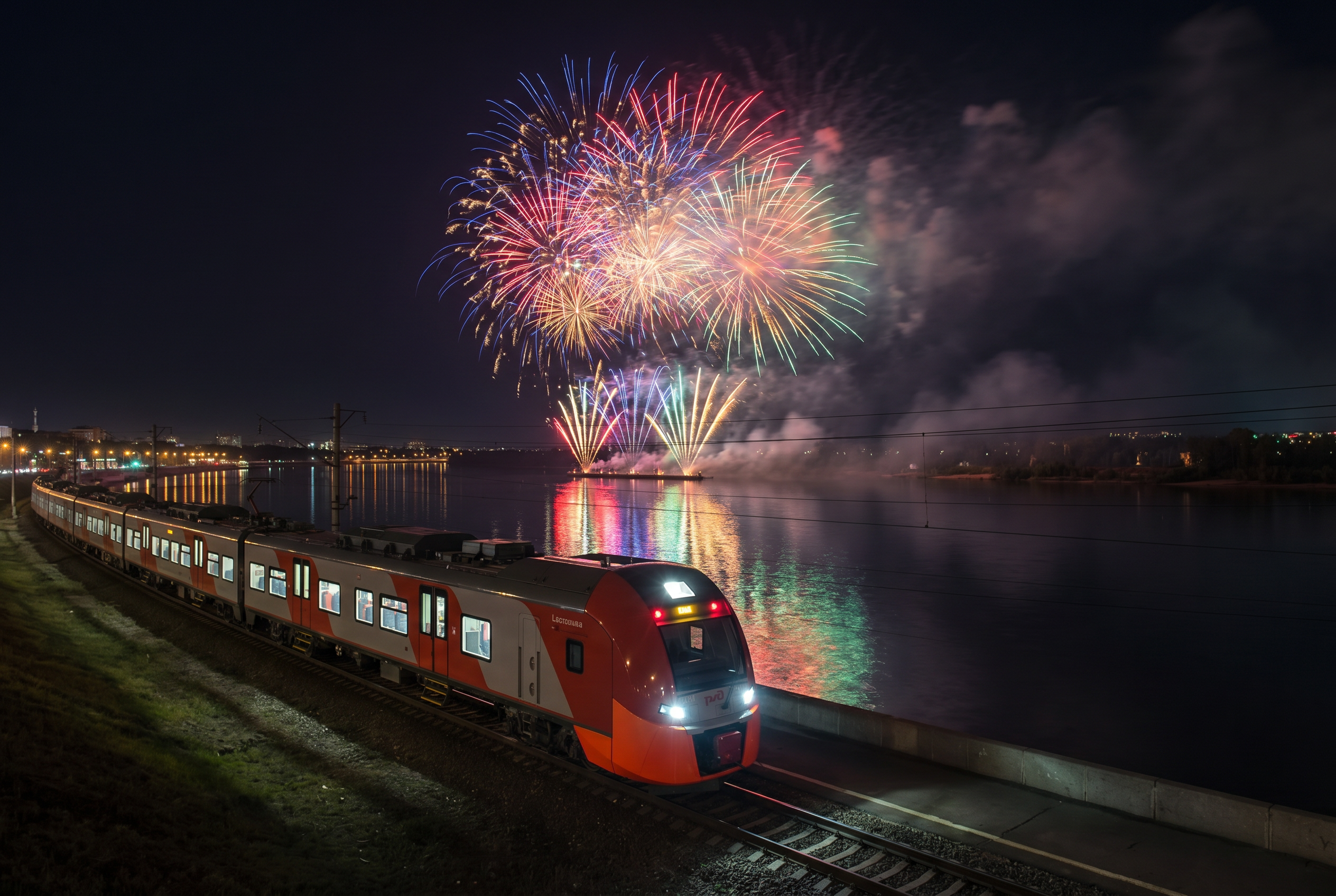 Фейерверки на правом берегу Камы ориентировочно прогремят в 23:00. Сразу после них пермяки смогут уехать на дополнительном поезде № 6050/6049 «Пермь II — Левшино — Пермь II».