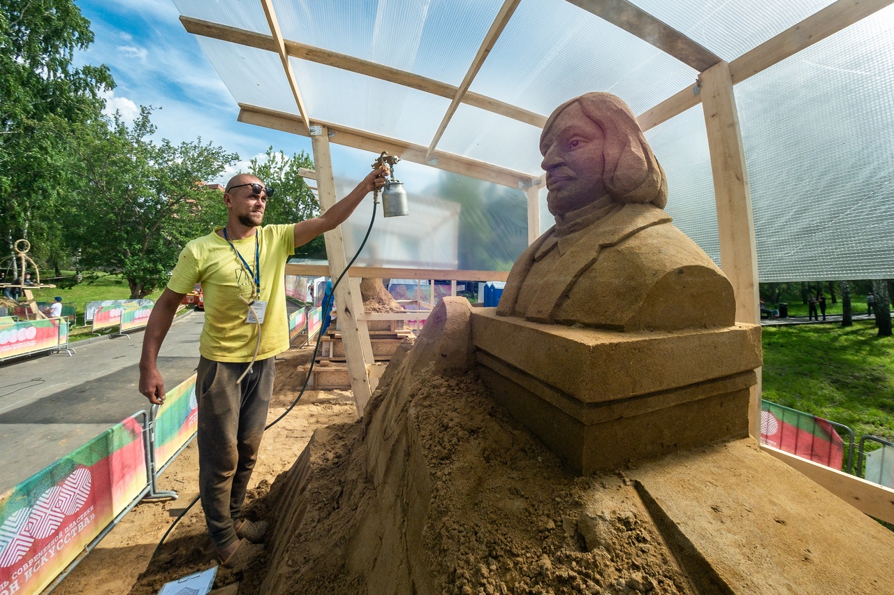 В Перми на набережной открылась выставка из песка и сена. Фоторепортаж
