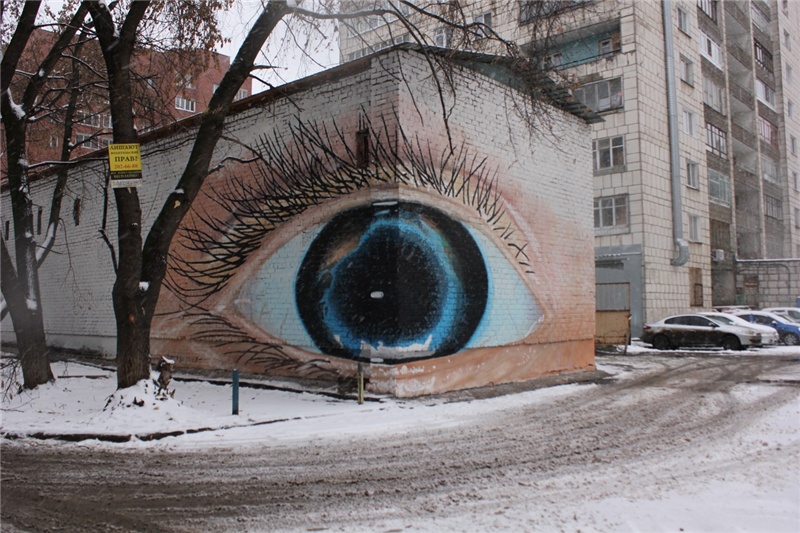 Жунев создал эту работу в 2011 году и дал название "Угол зрения". Детский глаз, в котором видны очертания Атлантического океана, был нарисован на углу здания так, что целую картину можно увидеть с определенного ракурса, стоя под углом к зданию.