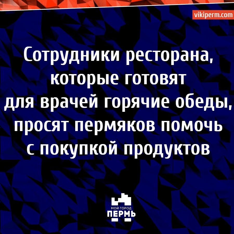 Сотрудники ресторана, которые готовят для врачей горячие обеды, просят пермяков помочь с покупкой продуктов