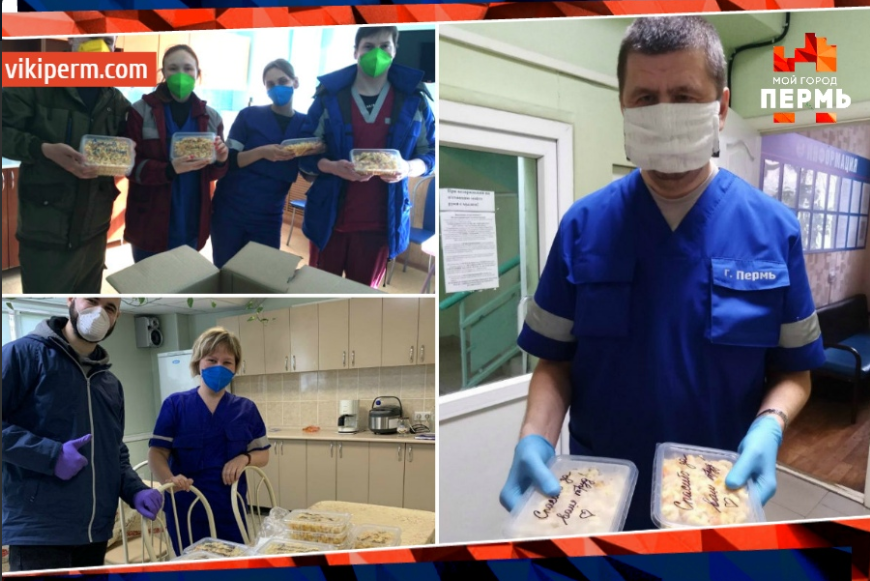 Организаторы проекта с помощью пермяков собирают горячие обеды, чтобы врачи и весь медперсонал не перекусывали на бегу, а нормалью питались. Так, уже 1000 горячих обедов для сотрудников скорой помощи приготовили сотрудники ресторана The Hound.