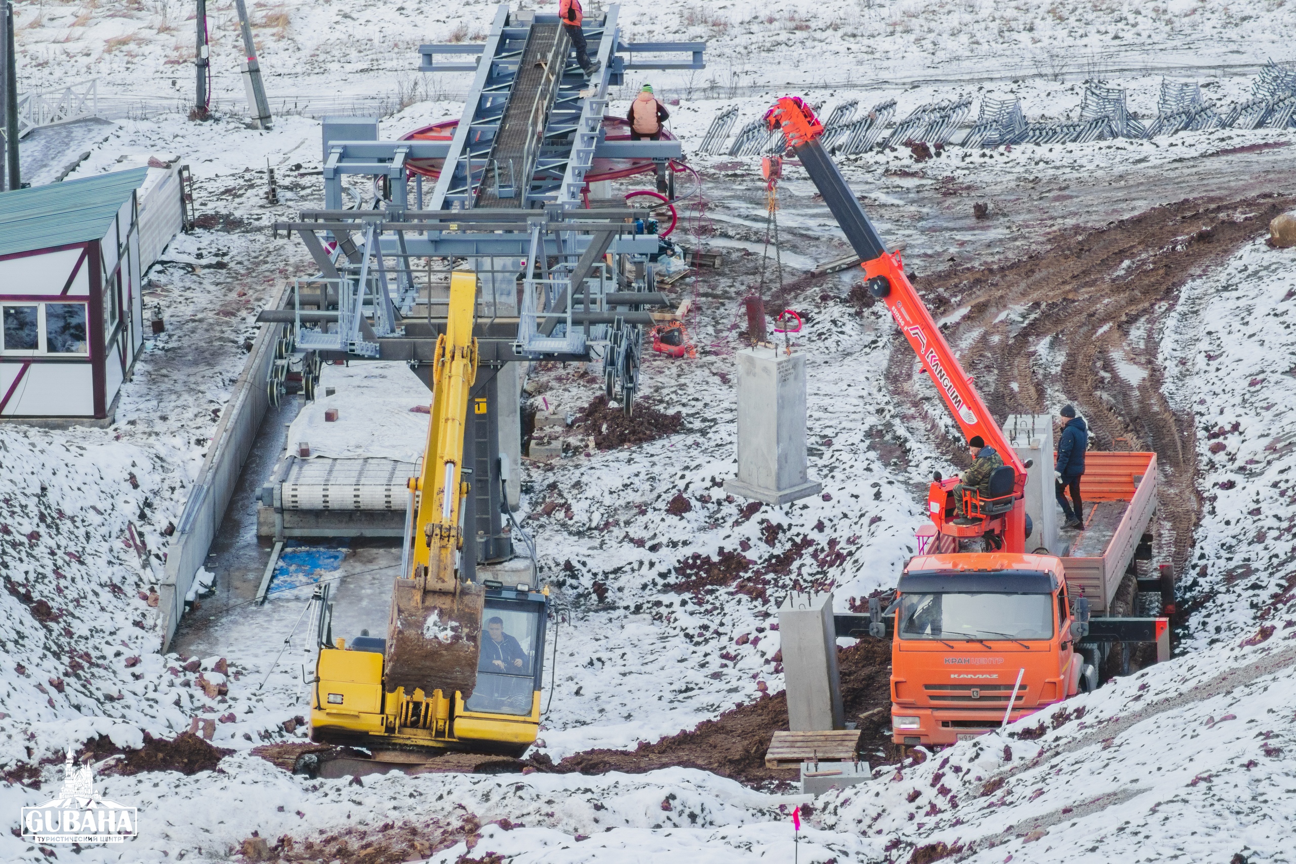 На территории горнолыжного центра «Губаха» постепенно подходят к концу работы по возведению нового кресельного подъемника. Гости смогут воспользоваться им уже в этом зимнем сезоне. Так, на сегодня оформлены все документы, подготовлена просека, а также завершены установка 17-ти опор подъемника, заливка фундаментов и монтаж траверсов с балансирами. Закончено троительство нижней станции, завершается строительство верхней. Сейчас руководство готовится к прохождению экспертизы.