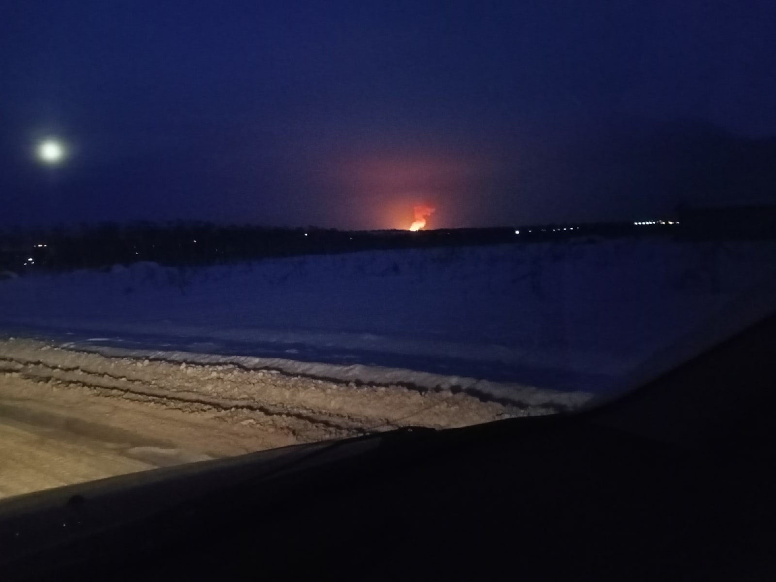 Другой же подписчик запечатлел "грибок из огня" в Закамске около Оборино. Пользователи предполагают, что инцидент произошел на пороховом заводе.