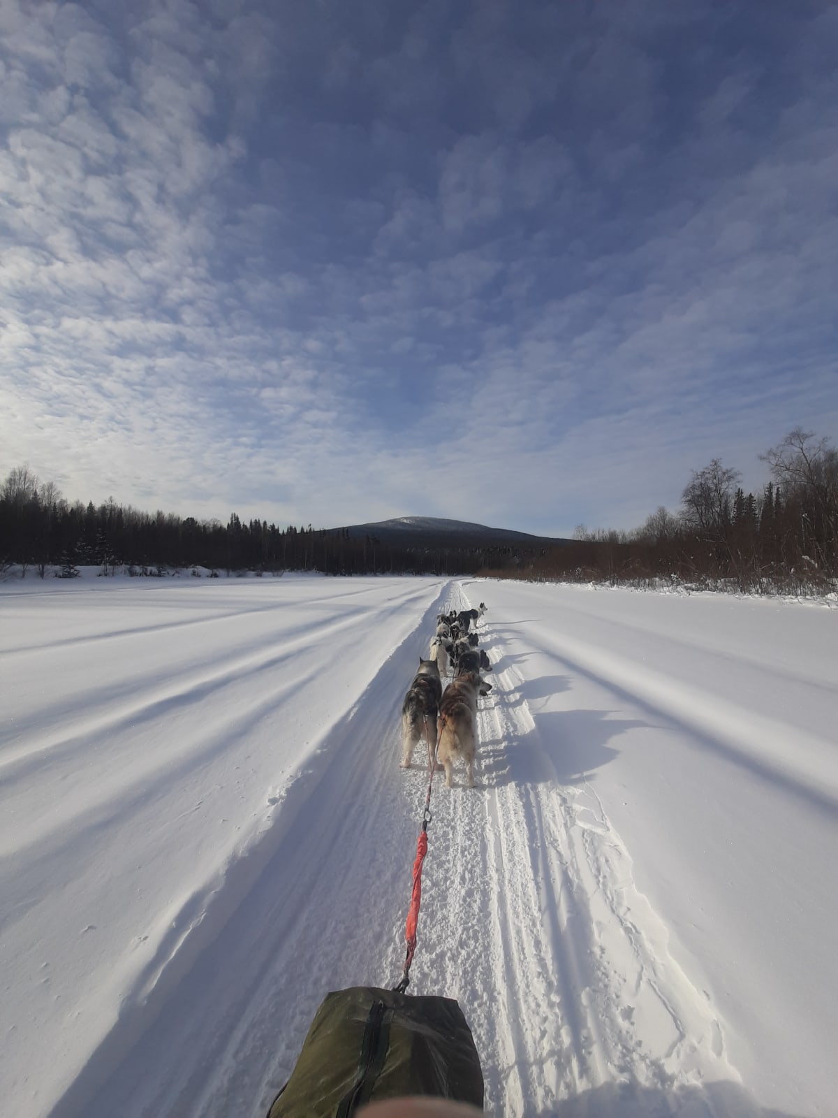 Сергей выдвинулся в 7:30, ребята на два часа позже. Путь должен был занять 25 км. В основном он шел в крутую гору. Вдруг навигатор отказался показывать местоположение. Сергей не понимал, где он находится и сколько еще идти. Деревьев становилось все меньше, они были кривые — это был первый признак, что поднимаешься в гору. Сергей все время разговаривал с собаками. Собаки, говорит мужчина, чувствуют настроение каюра, и если оно плохое, то лучше никуда не идти.