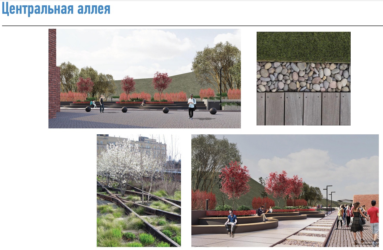 Саму концепцию пространства предлагается создать на чётком контрасте промышленного окружения — грубых фактур — и свежей, мягкой для восприятия, растительной составляющей. Природа должна как бы прошивать существующий промышленный ландшафт, «взрывать» мощение и как бы прорастать сквозь сооружения.